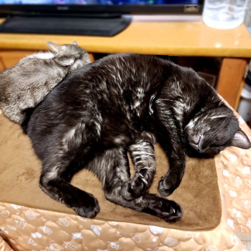 暖かくなるタイプのコタツの天板は、いつも早いモン勝ちのようです♪